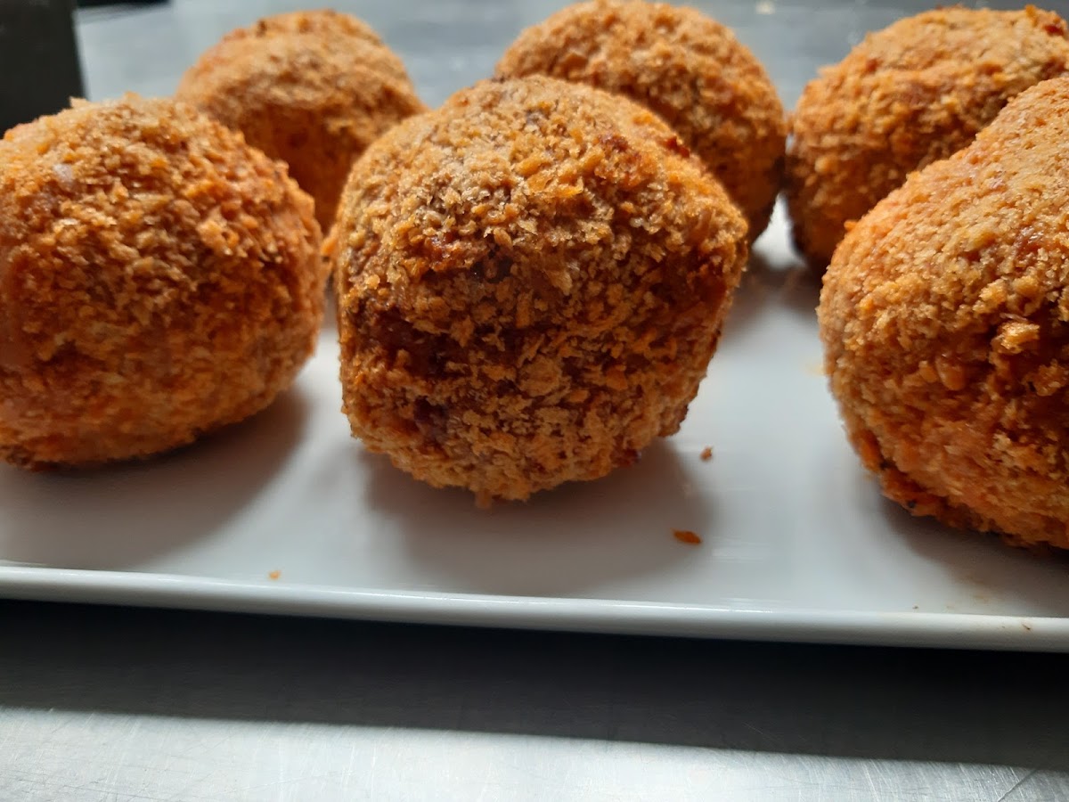 Chorizo Scotch Egg: A deliciously crispy, golden-brown exterior with a perfectly cooked egg in the center. This dish offers a perfect balance of savory flavors.
