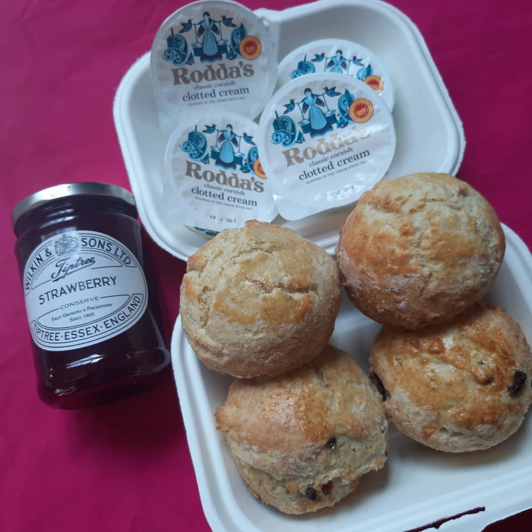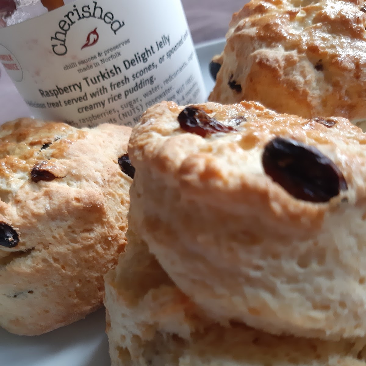 Scones with Turkish Delight Jam: Homemade scones, served with the unique twist of Turkish delight jam, offering a delightful fusion of flavors.